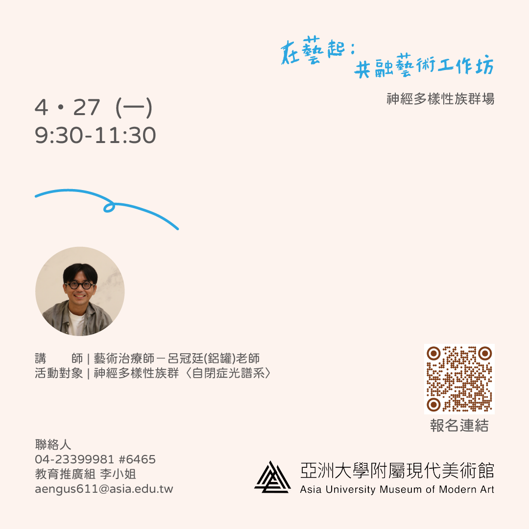 ★所有活動相關資訊,以亞洲大學附屬現代美術館粉絲頁公告為主,詳情請洽主辦單位