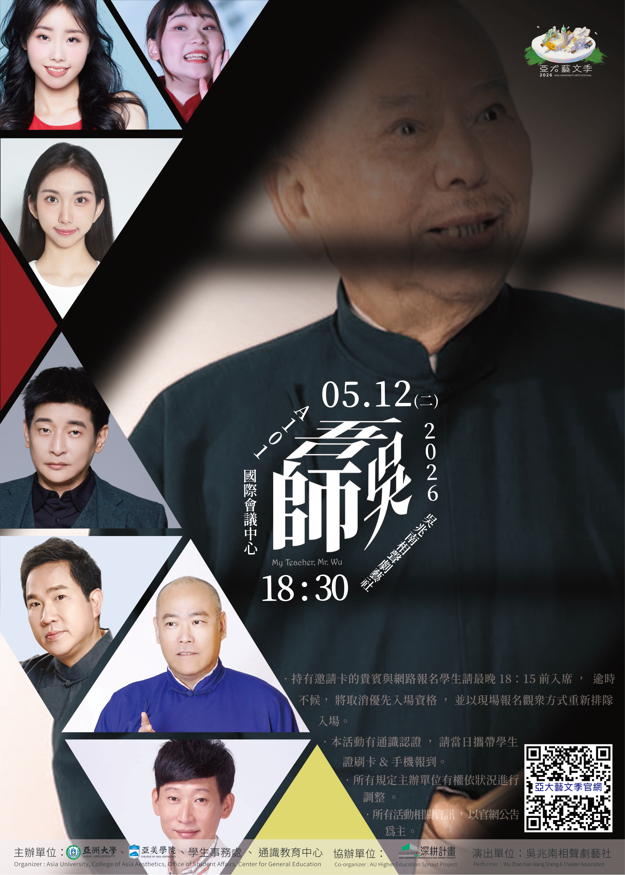 今年(2026)是吳兆南出生一百周年,為紀念師父並彙報傳承成果,特推出本檔演出,以「老帶新」方式呈現,落實傳薪遞火、延續相聲發展!