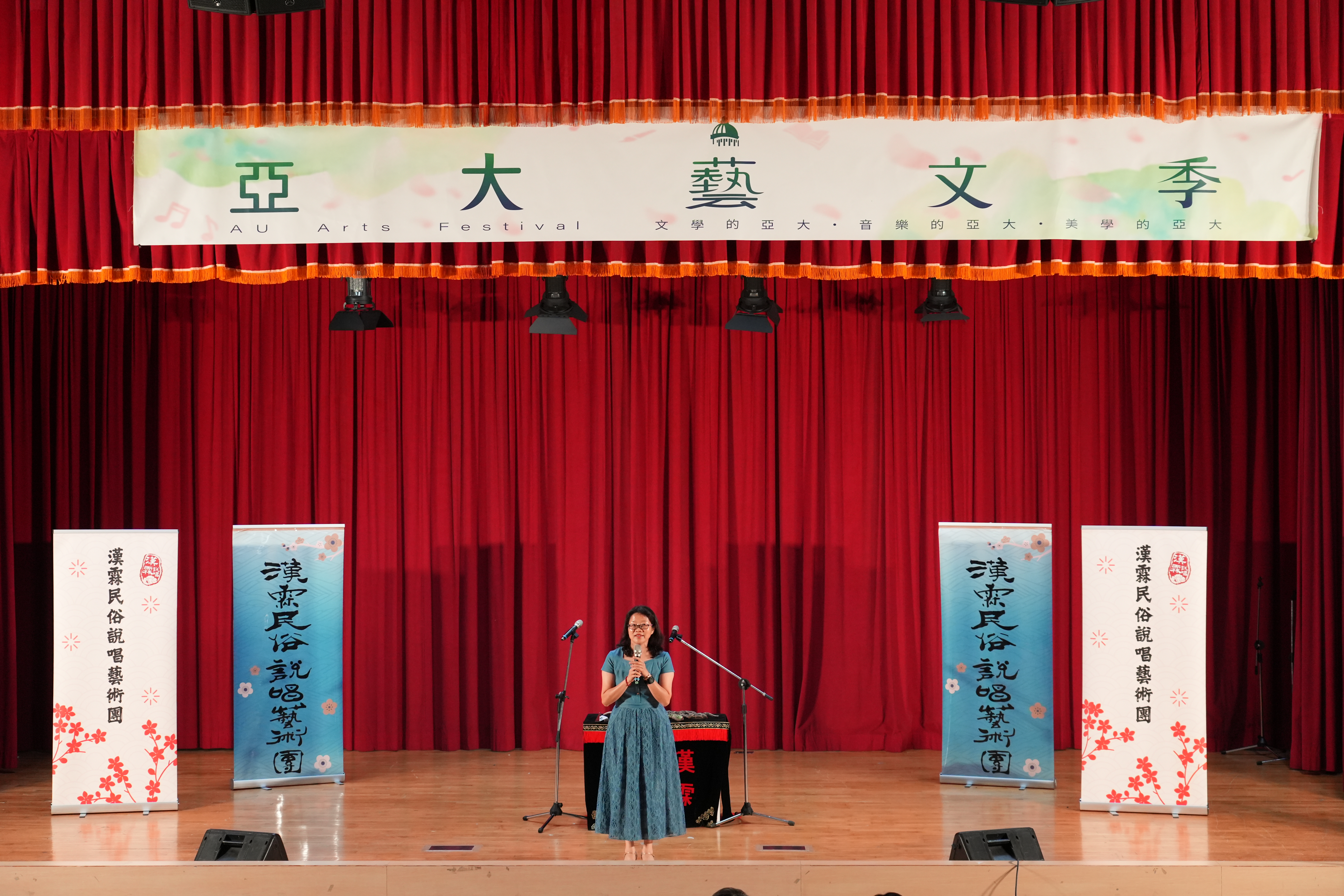 | 圖說 通識教育中心黃淑貞主任致詞,為演出揭開序幕,展現亞洲大學致力於深化藝文涵養,培養學生對傳統文化的理解與熱愛 |