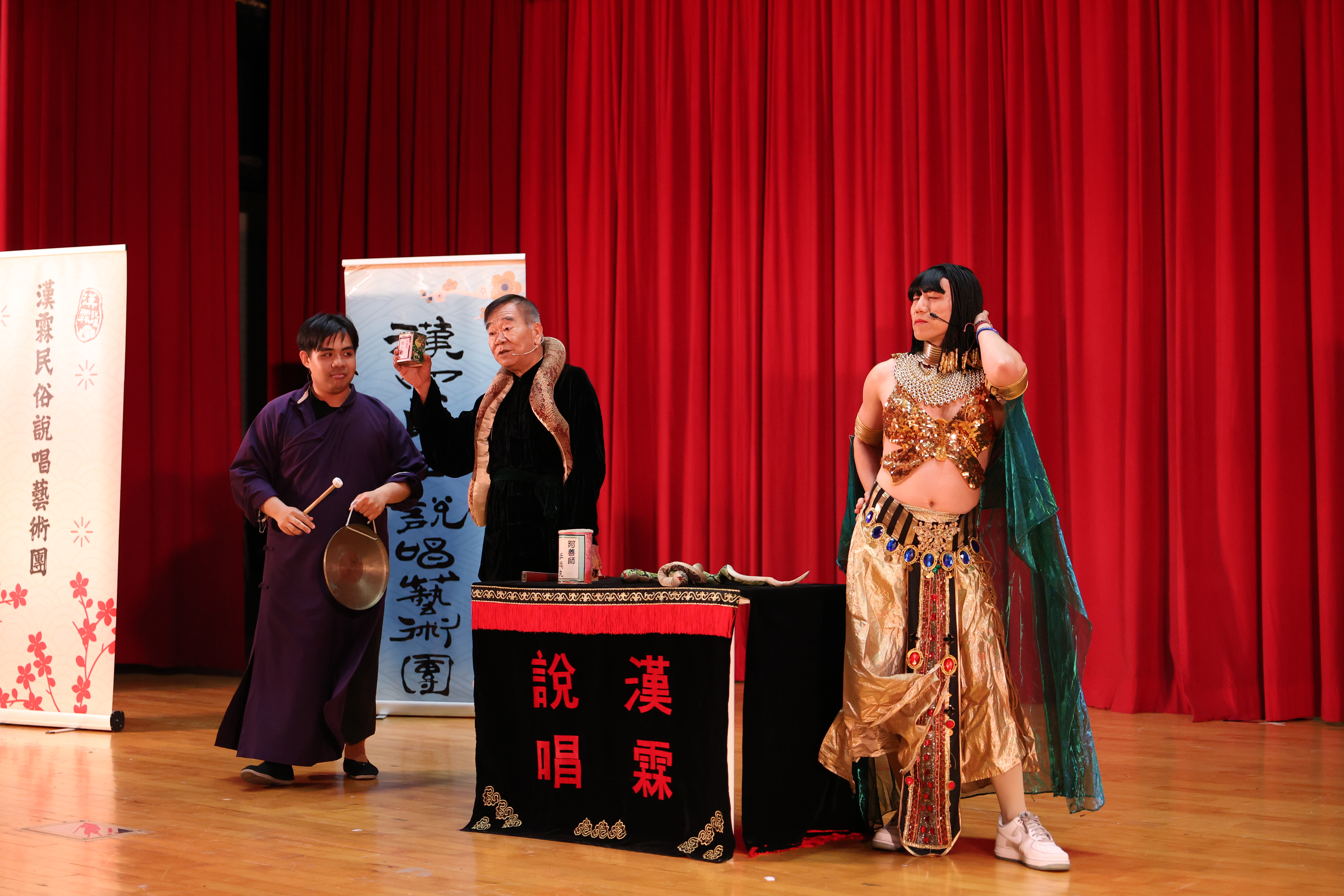 竹板大師張春泉介紹「數來寶」、「快板」、「竹板快書」的差異,並現場即興演出經典段子。原訂演出《小白蛇傳》,還為了亞大師生加碼《三打白骨精》橋段,讓全場驚喜不已。壓軸的對口相聲〈喊玲瓏〉,由賈祥國女扮男裝演繹「思嫁的埃及豔后」開場,戲中賣藥橋段致敬經典廣播節目,喚起不少人印象中和阿公阿嬤聽收音機的回憶。